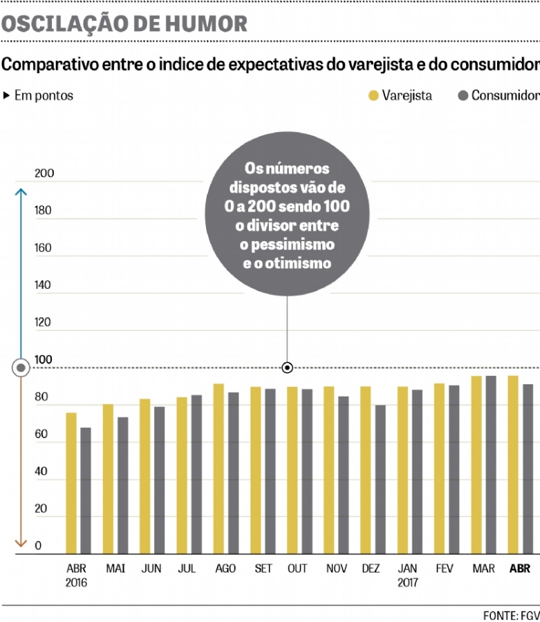 Um exemplo desse descolamento da expectativa do consumidor e do varejista pode ser visto essa semana nos indicadores de confiança da Fundação Getulio Vargas (FGV).