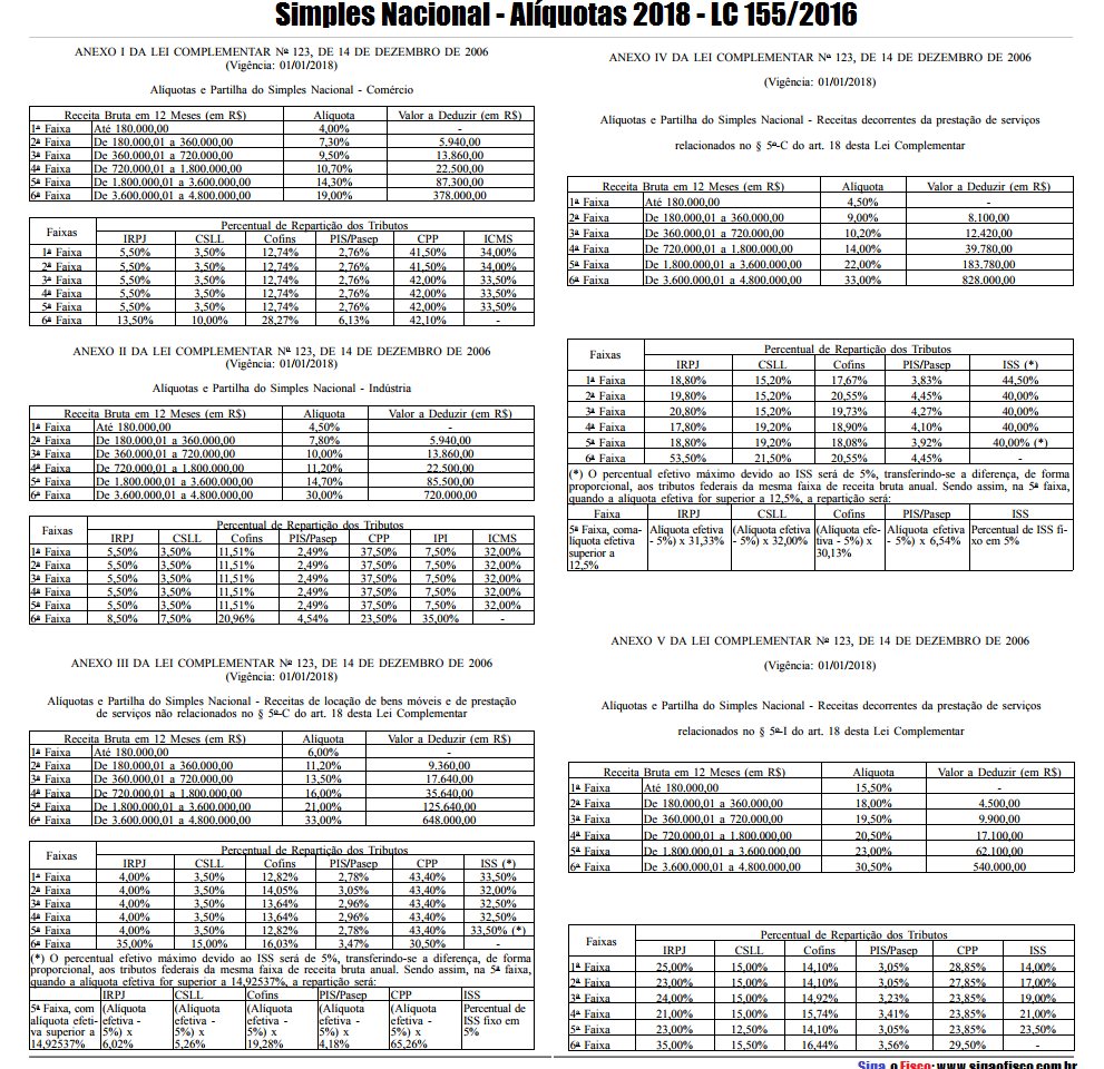 A Lei Complementar nº 155/2016 instituiu novo teto para o Simples (R$ 4,8 milhões), alterou as tabelas que tratam das alíquotas e instituiu a figura da parcela a deduzir.